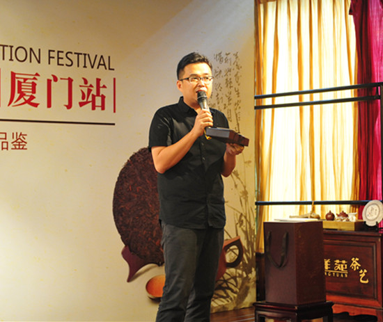 华祥苑品牌中心总监胡金雨现场介绍华祥苑推出的“朝贡天品”茶票具有的三大优势:一是所选普洱茶秉承勐昌号一贯特色,出自云南勐海原产地,严选老树茶,非常具有收藏价值;二是方便收藏,普洱茶的收藏需要一定的条件,由华祥苑普洱仓统一专业规范保存,收藏者可免去烦恼;二是方便送礼,礼赠时只须将样本赠送给对方,受赠人则凭票兑换提取实物,是礼赠尊长、客户、贵人绝佳品。正是这种无与伦比的优势,008号茶票及产品被福建省收藏家协会专项收藏,荣获权威认证,引发普洱迷藏友们争相出手认购。